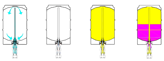 Слив остатков щелочного раствора с помощью сжатого воздуха